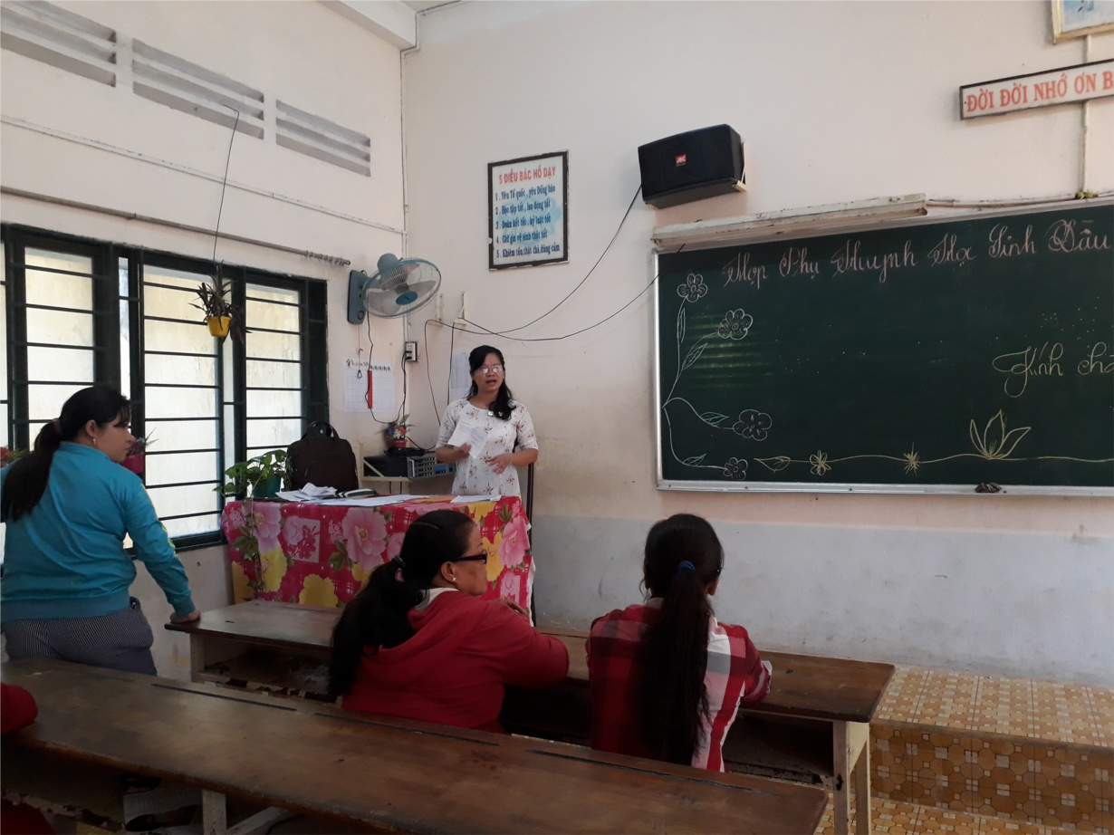 Mở đầu cuộc họp, các bậc phụ huynh đã được nghe giáo viên chủ nhiệm lớp báo cáo về tình hình chung của nhà trường như: chiến lược phát triển, cơ sở của sự thành công nhà trường, những thành tích của thầy và trò nhà trường trong những năm học vừa qua, đặc biệt là quá trình cải tạo- xây dựng cơ sở vật chất nhà trường trong thời gian tới. Tiếp theo đó, các nội dung trọng tâm cần thông báo đến phụ huynh lần lượt được triển khai một cách cụ thể, bao gồm: mục tiêu phấn đấu trong năm học 2017 - 2018, những nội quy học tập mà học sinh cần thực hiện và quan trọng nhất là kế hoạch mà nhà trường đề ra trong công tác giảng dạy chuyên môn, giáo dục giá trị sống, rèn luyện kỹ năng sống, hoạt động câu lạc bộ và đặc điểm tình hình lớp...